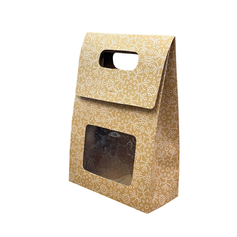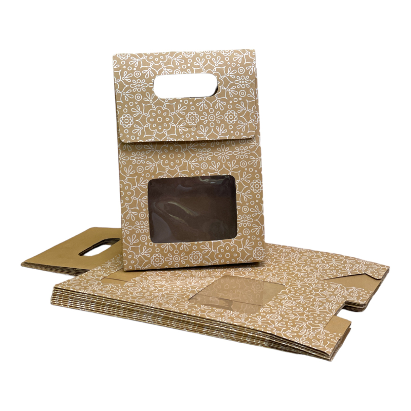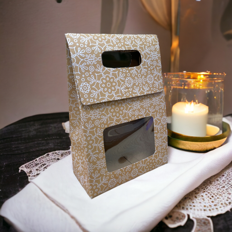 This small paper box features a clear window, making it perfect for displaying items while keeping them securely enclosed. Ideal for packaging gifts, treats, or small products, its elegant design