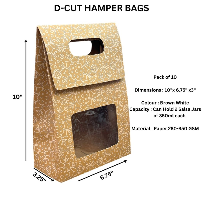 This D cut Jar hamper box is thoughtfully crafted to accommodate two jarsĀ TheĀ design is both elegant and practical, ensuring that the jars are securely presented. Ideal for any occasion, this hamper combines sophistication with a personal touch, offering a delightful experience whether for gifting or personal indulgence.