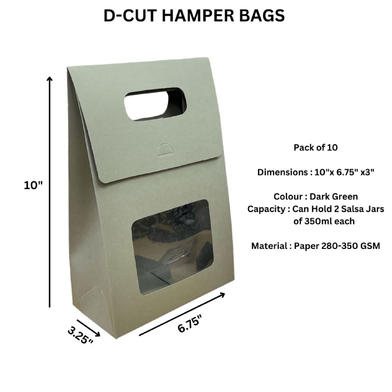 This D cut Jar hamper box is thoughtfully crafted to accommodate two jarsĀ TheĀ design is both elegant and practical, ensuring that the jars are securely presented. Ideal for any occasion, this hamper combines sophistication with a personal touch, offering a delightful experience whether for gifting or personal indulgence.