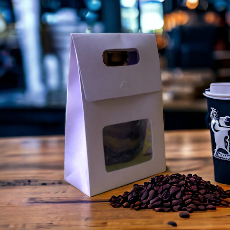 The "Cake Bag Dori Brown" for 500gm is a sturdy and eco-friendly food take-away bag designed specifically for transporting cakes and pastries. Its brown color gives it a classic and
