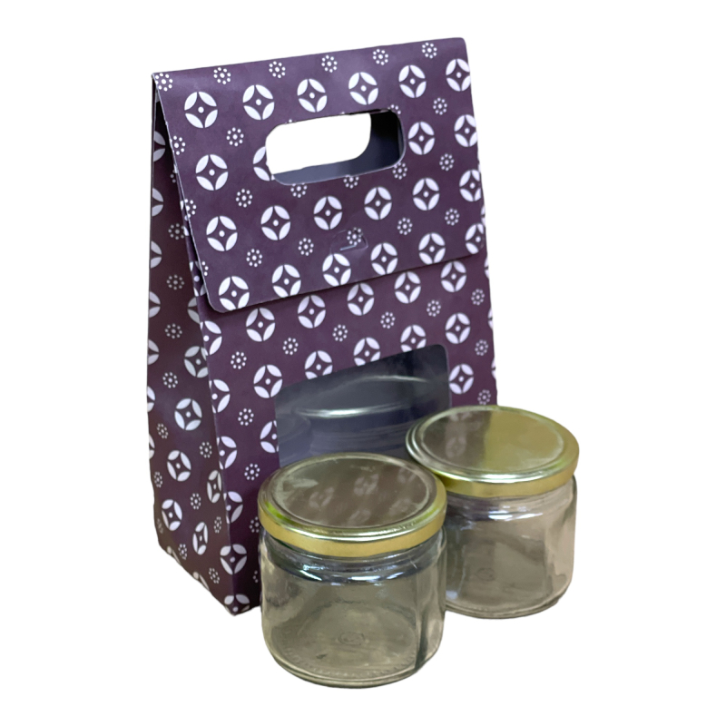 This D cut Jar hamper box is thoughtfully crafted to accommodate two jarsĀ TheĀ design is both elegant and practical, ensuring that the jars are securely presented. Ideal for any occasion, this hamper combines sophistication with a personal touch, offering a delightful experience whether for gifting or personal indulgence.