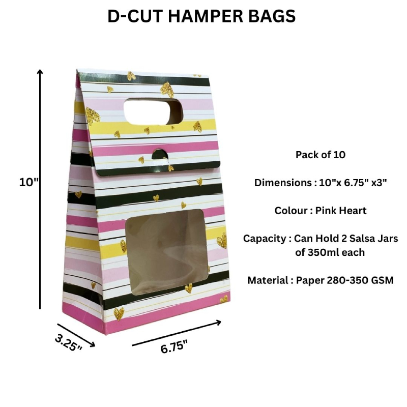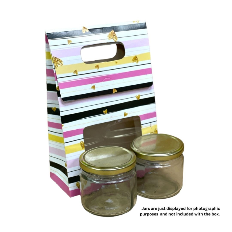 This D cut Jar hamper box is thoughtfully crafted to accommodate two jars The design is both elegant and practical, ensuring that the jars are securely presented. Ideal for any occasion, this hamper combines sophistication with a personal touch, offering a delightful experience whether for gifting or personal indulgence.