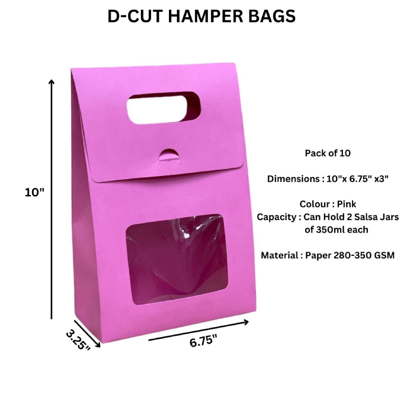 This D cut Jar hamper box is thoughtfully crafted to accommodate two jarsĀ TheĀ design is both elegant and practical, ensuring that the jars are securely presented. Ideal for any occasion, this hamper combines sophistication with a personal touch, offering a delightful experience whether for gifting or personal indulgence.