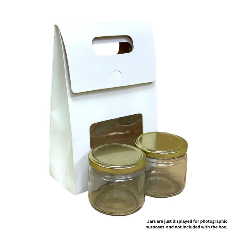 This D cut Jar hamper box is thoughtfully crafted to accommodate two jarsĀ TheĀ design is both elegant and practical, ensuring that the jars are securely presented. Ideal for any occasion, this hamper combines sophistication with a personal touch, offering a delightful experience whether for gifting or personal indulgence.