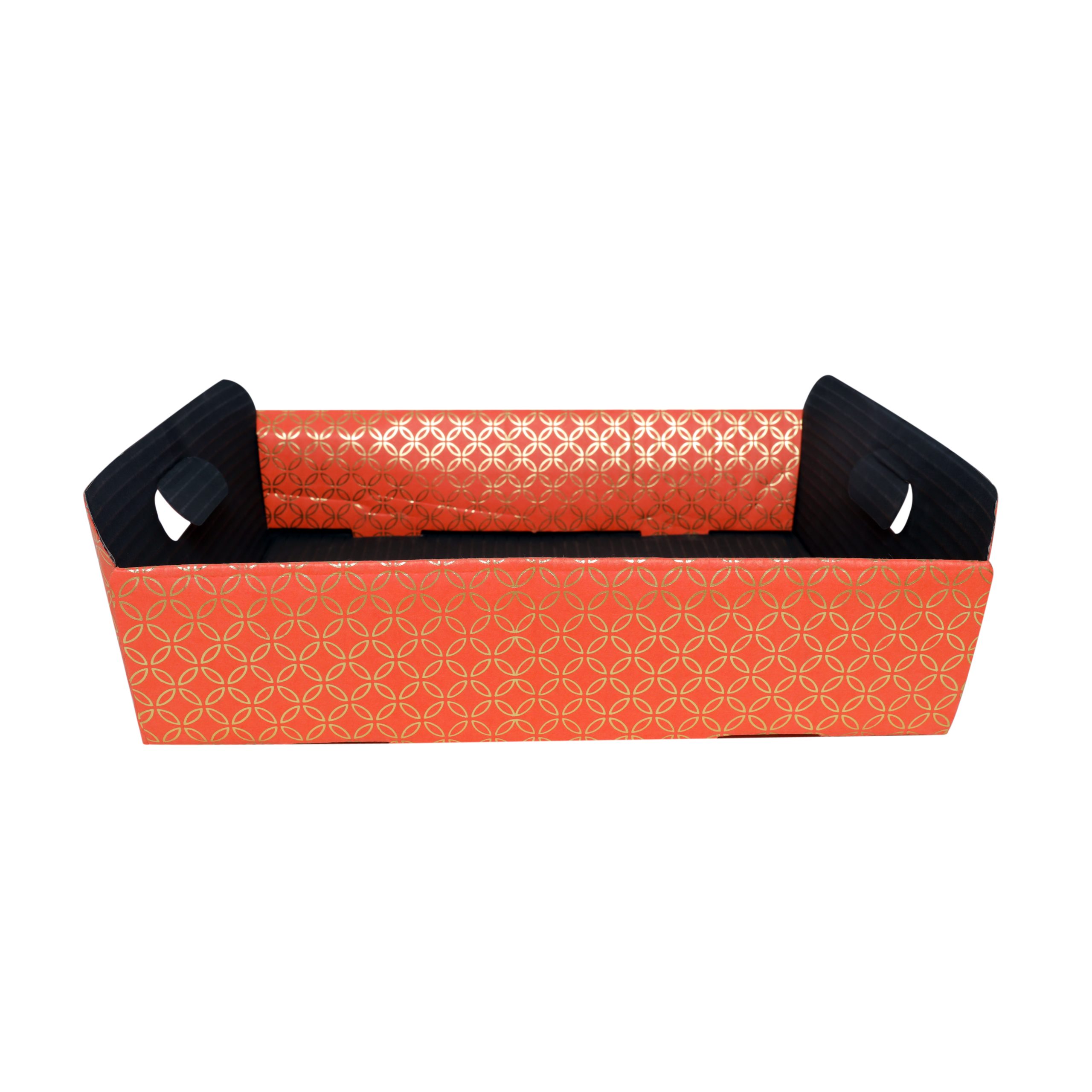 Hamper trays are typically shallow, rectangular trays used for organizing and presenting items in a hamper or gift basket. They are often made from materials like wicker, wood, or cardboard, and they come in various sizes and designs to fit different hamper styles and contents.