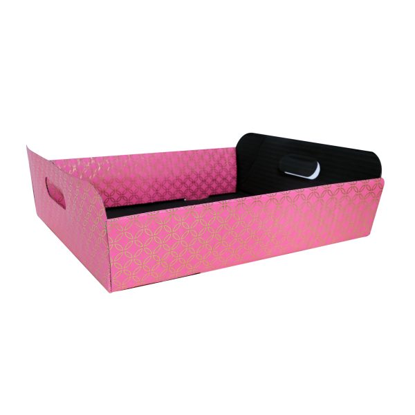 Hamper trays are typically shallow, rectangular trays used for organizing and presenting items in a hamper or gift basket. They are often made from materials like wicker, wood, or cardboard, and they come in various sizes and designs to fit different hamper styles and contents.