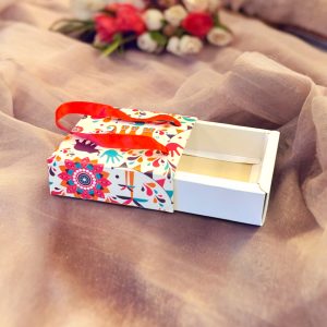 A paper slider box is a stylish packaging solution featuring a sliding mechanism. It consists of a sturdy outer sleeve and an inner tray that slides out, offering an elegant