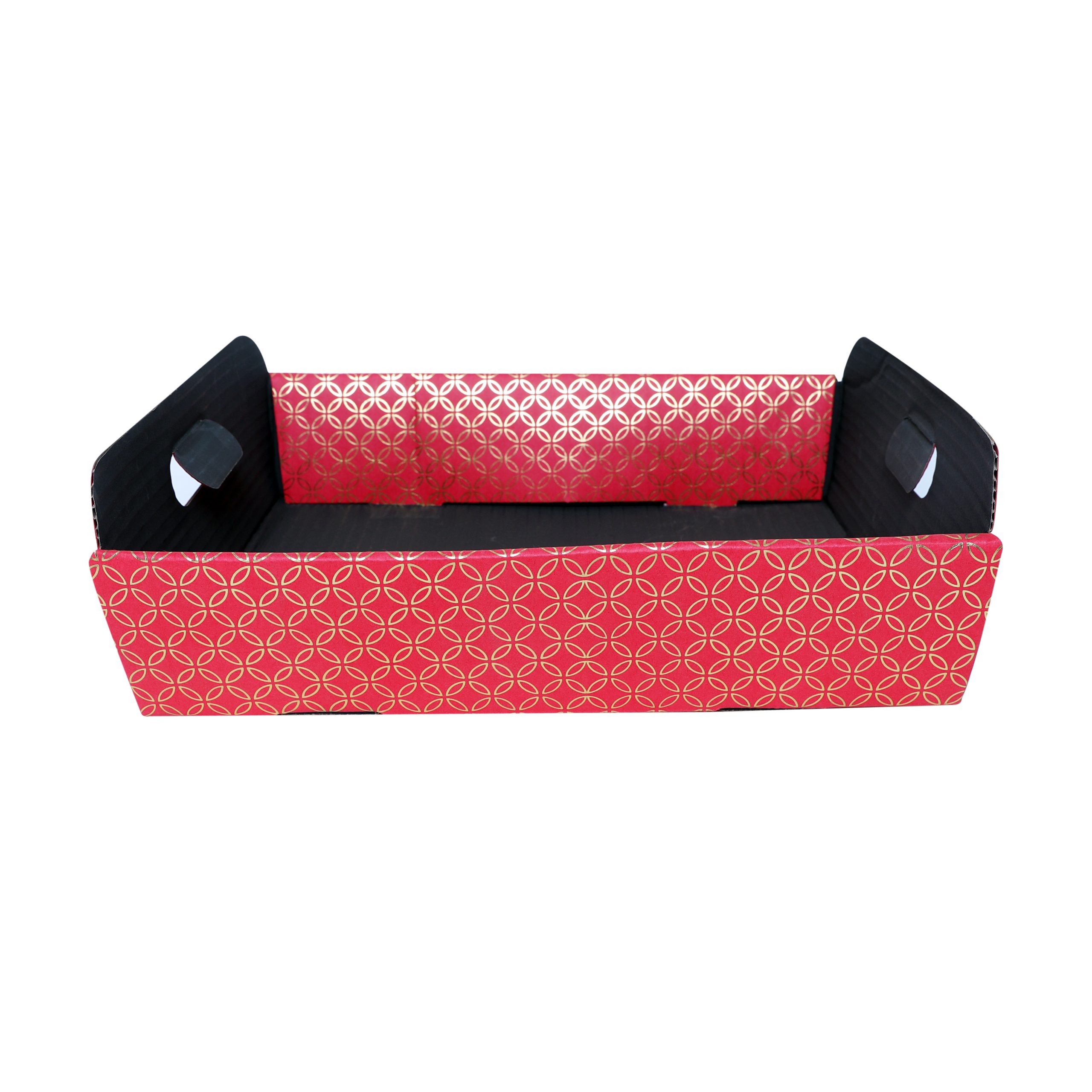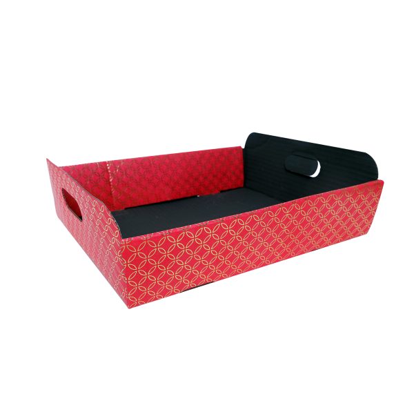 Hamper trays are typically shallow, rectangular trays used for organizing and presenting items in a hamper or gift basket. They are often made from materials like wicker, wood, or cardboard, and they come in various sizes and designs to fit different hamper styles and contents.