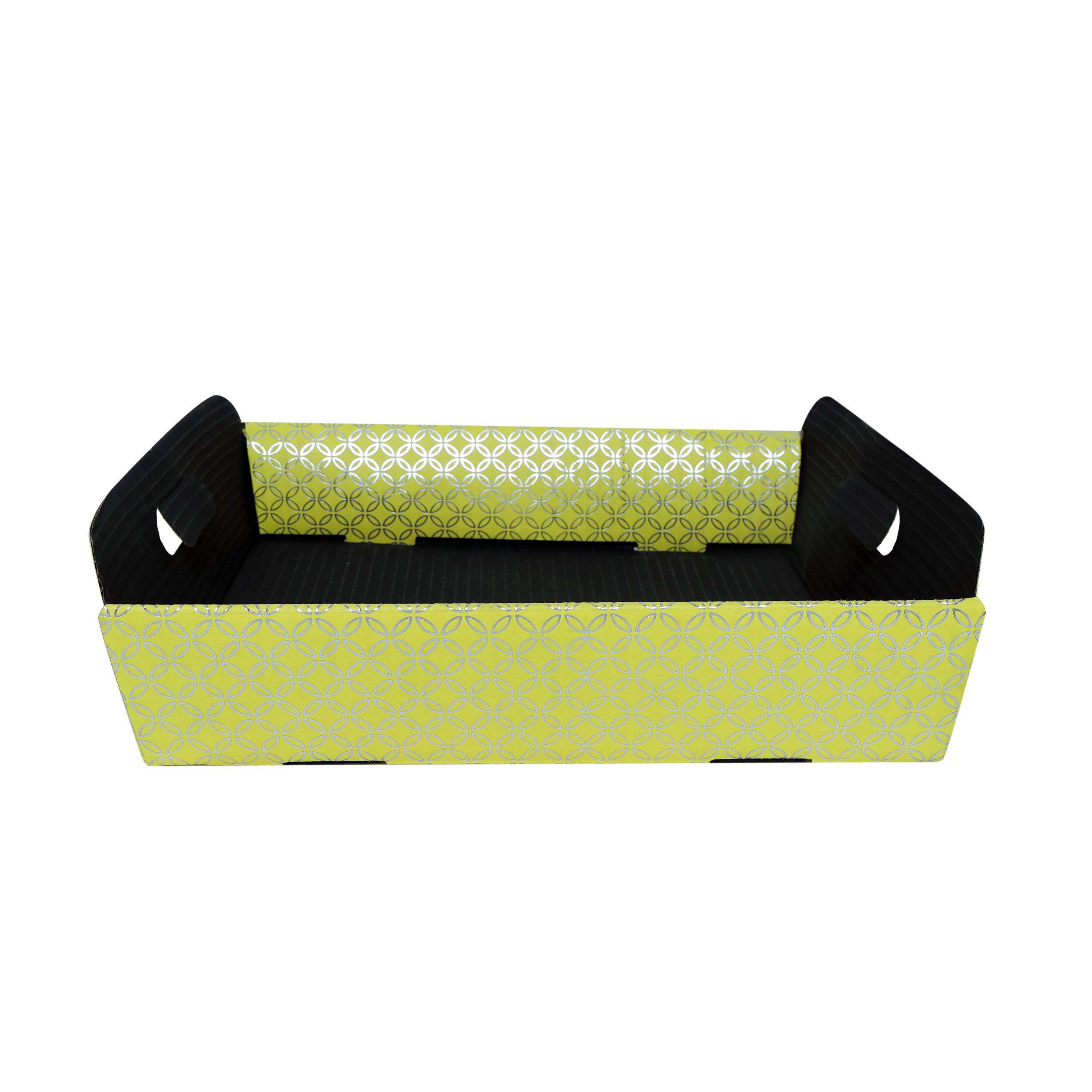 Hamper trays are typically shallow, rectangular trays used for organizing and presenting items in a hamper or gift basket. They are often made from materials like wicker, wood, or cardboard, and they come in various sizes and designs to fit different hamper styles and contents.
