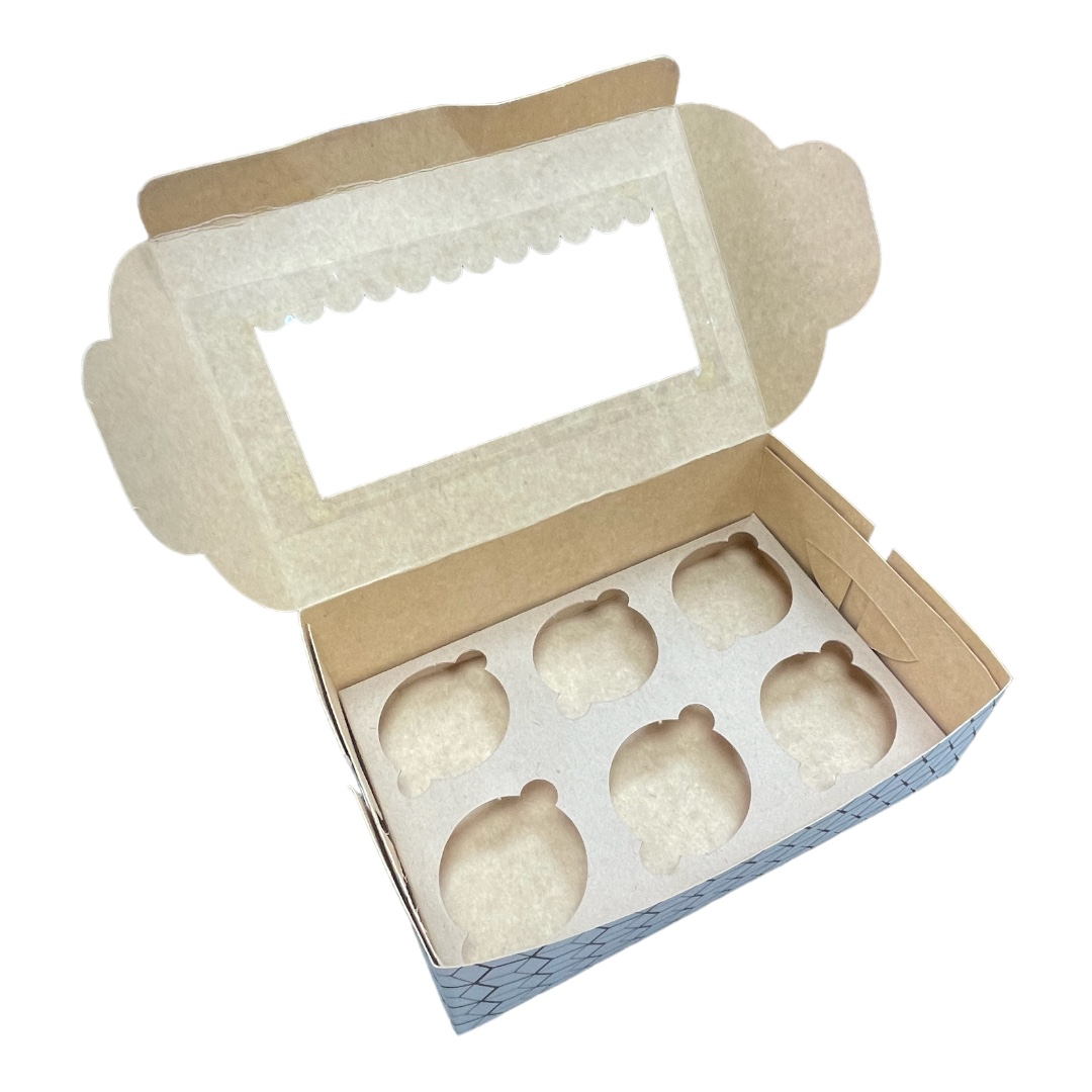 "Cake/Muffin Box" used to store and transport muffins. These boxes are typically made of cardboard or paperboard and come in various sizes to accommodate different quantities of muffins. They often