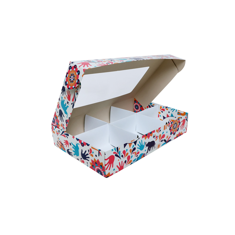 "Cake/Muffin Box" used to store and transport muffins. These boxes are typically made of cardboard or paperboard and come in various sizes to accommodate different quantities of muffins. They often