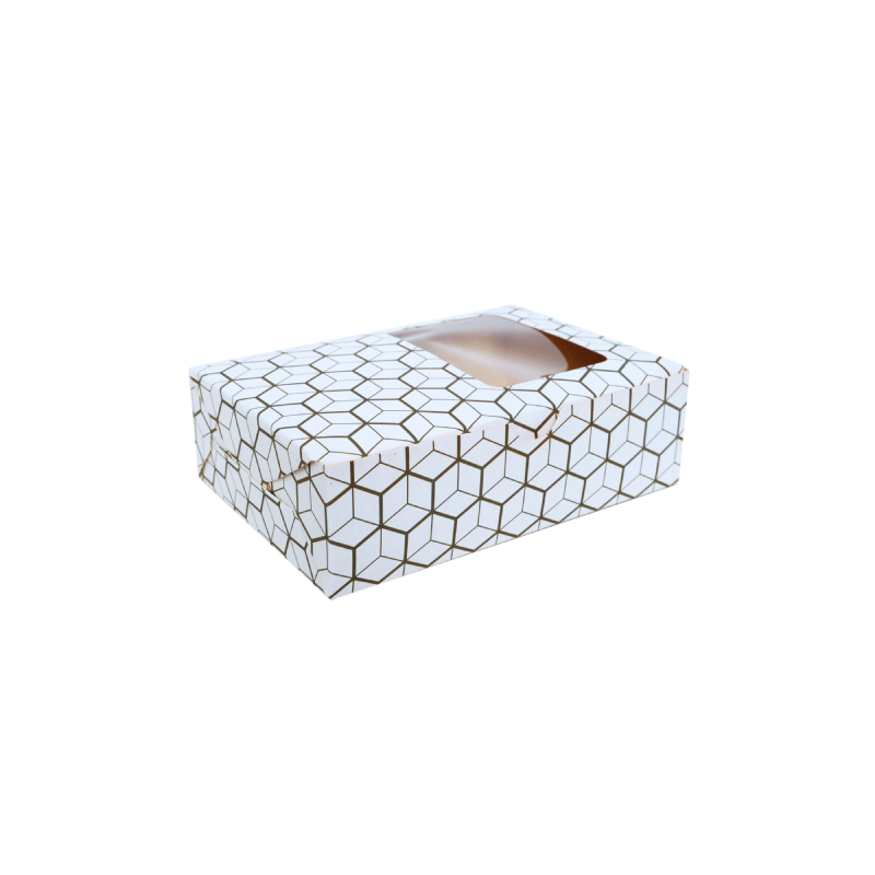 "Cake/Muffin Box" used to store and transport muffins. These boxes are typically made of cardboard or paperboard and come in various sizes to accommodate different quantities of muffins. They often