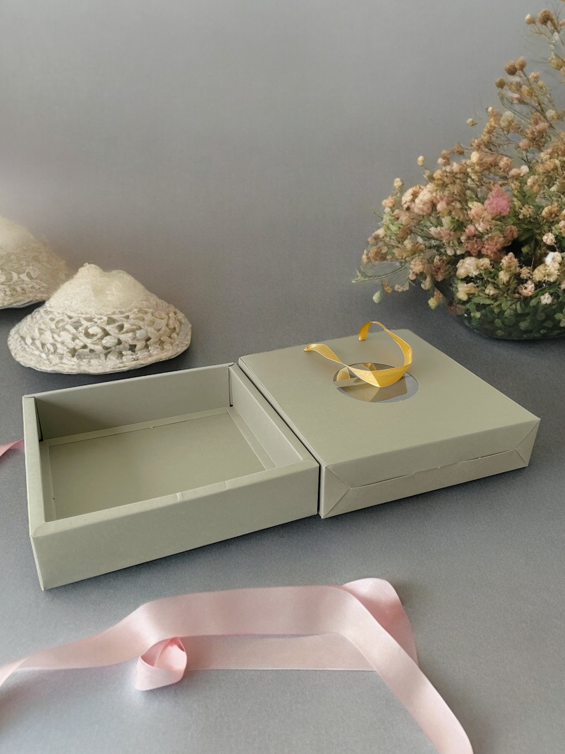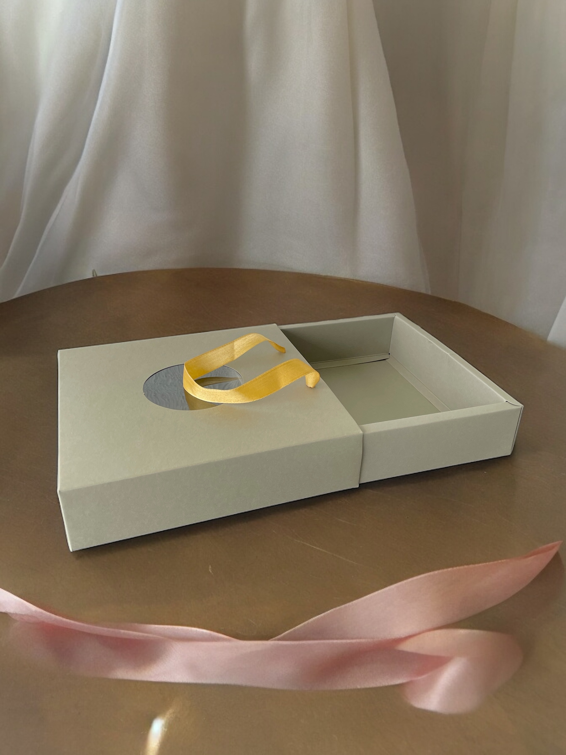 This small paper box features a clear window, making it perfect for displaying items while keeping them securely enclosed. Ideal for packaging gifts, treats, or small products, its elegant design