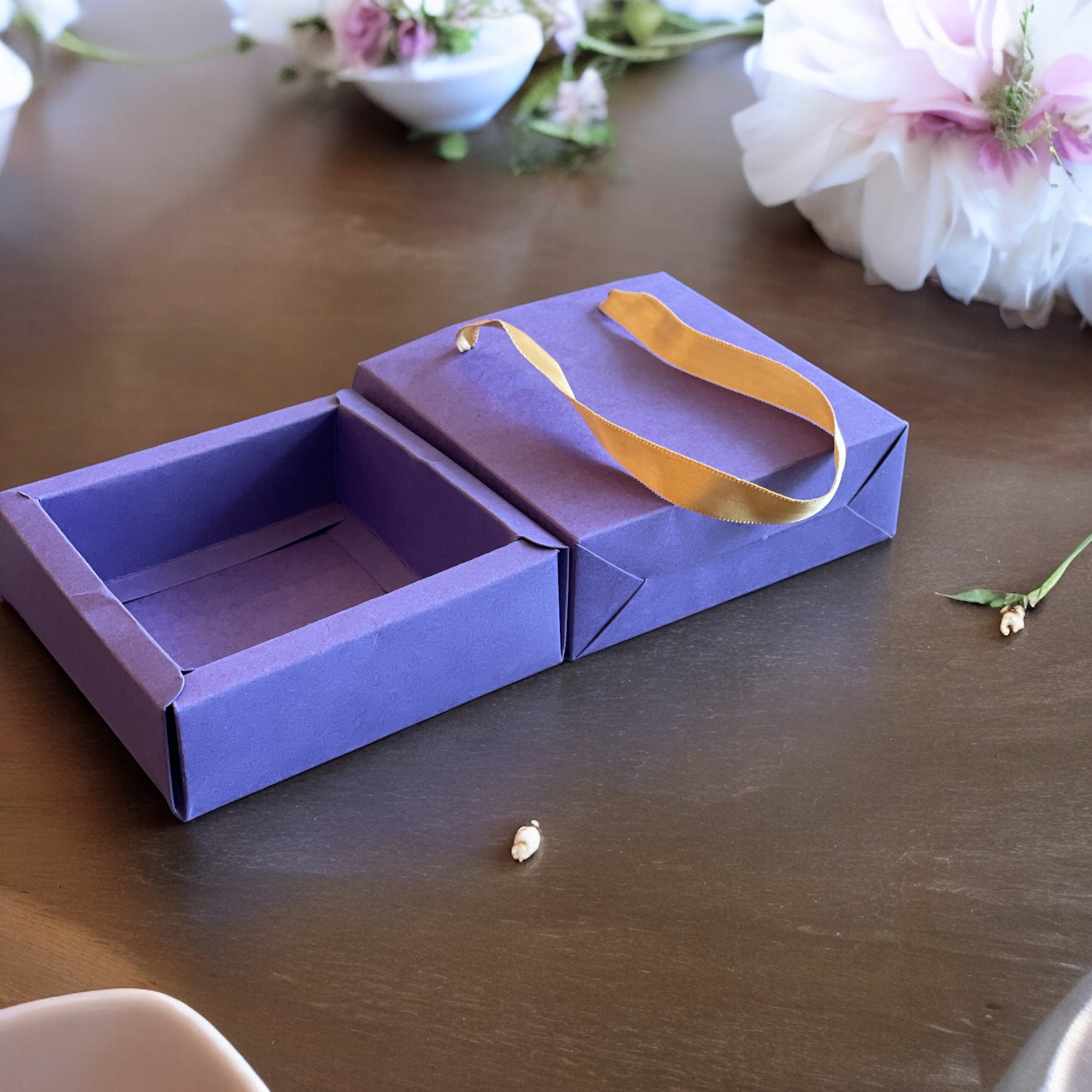 A paper slider box is a stylish packaging solution featuring a sliding mechanism. It consists of a sturdy outer sleeve and an inner tray that slides out, offering an elegant
