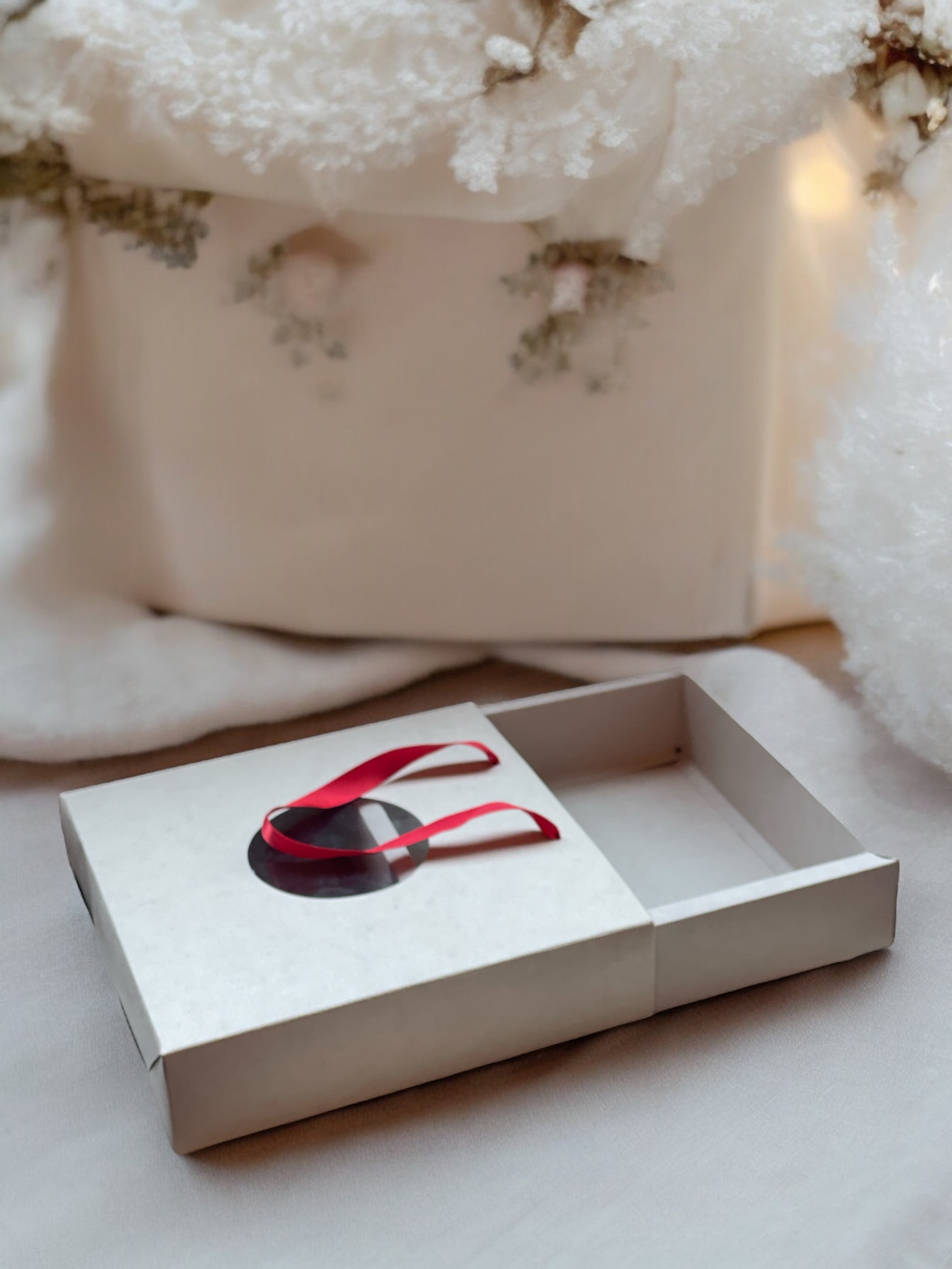 A paper slider box is a stylish packaging solution featuring a sliding mechanism. It consists of a sturdy outer sleeve and an inner tray that slides out, offering an elegant