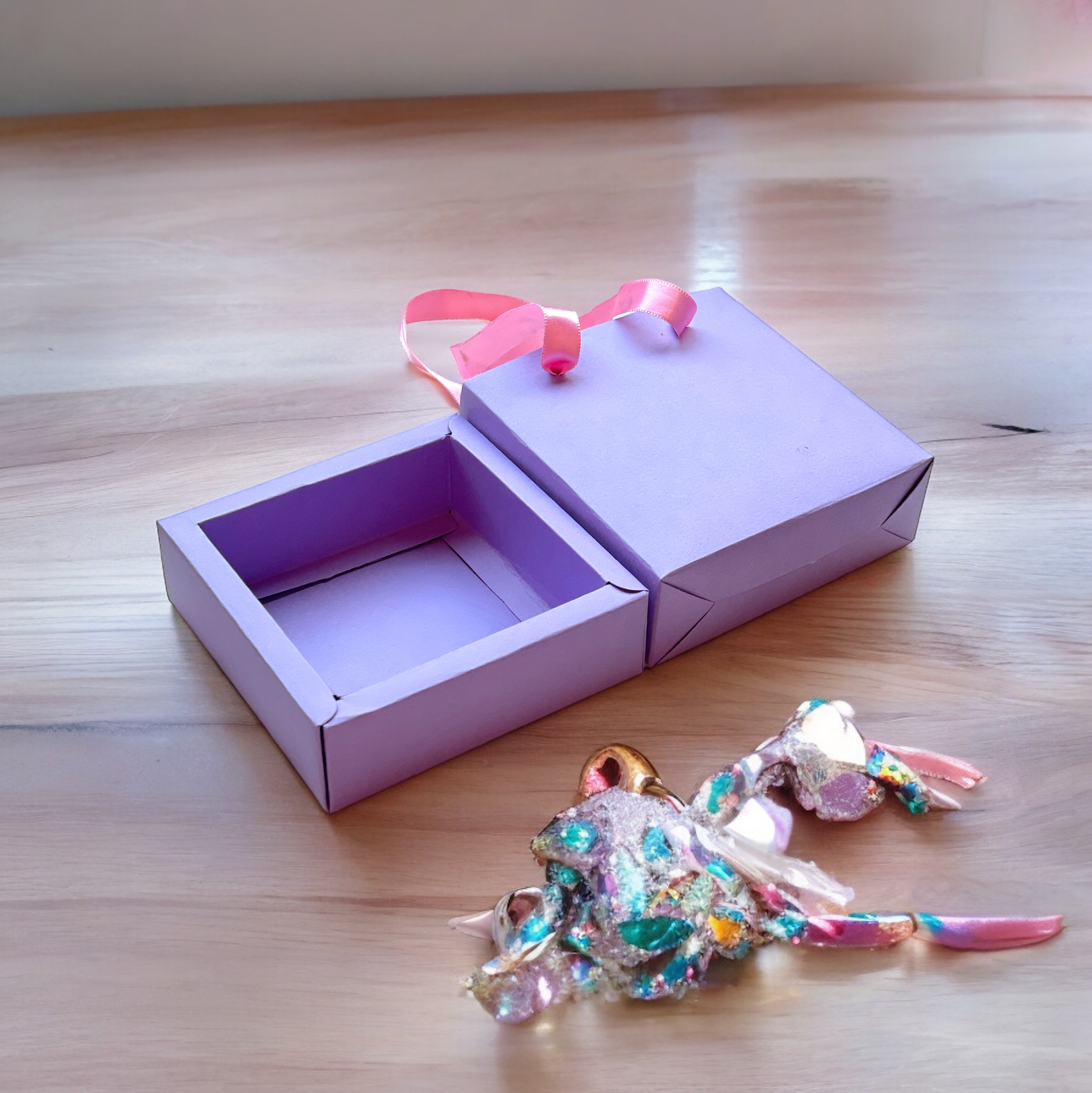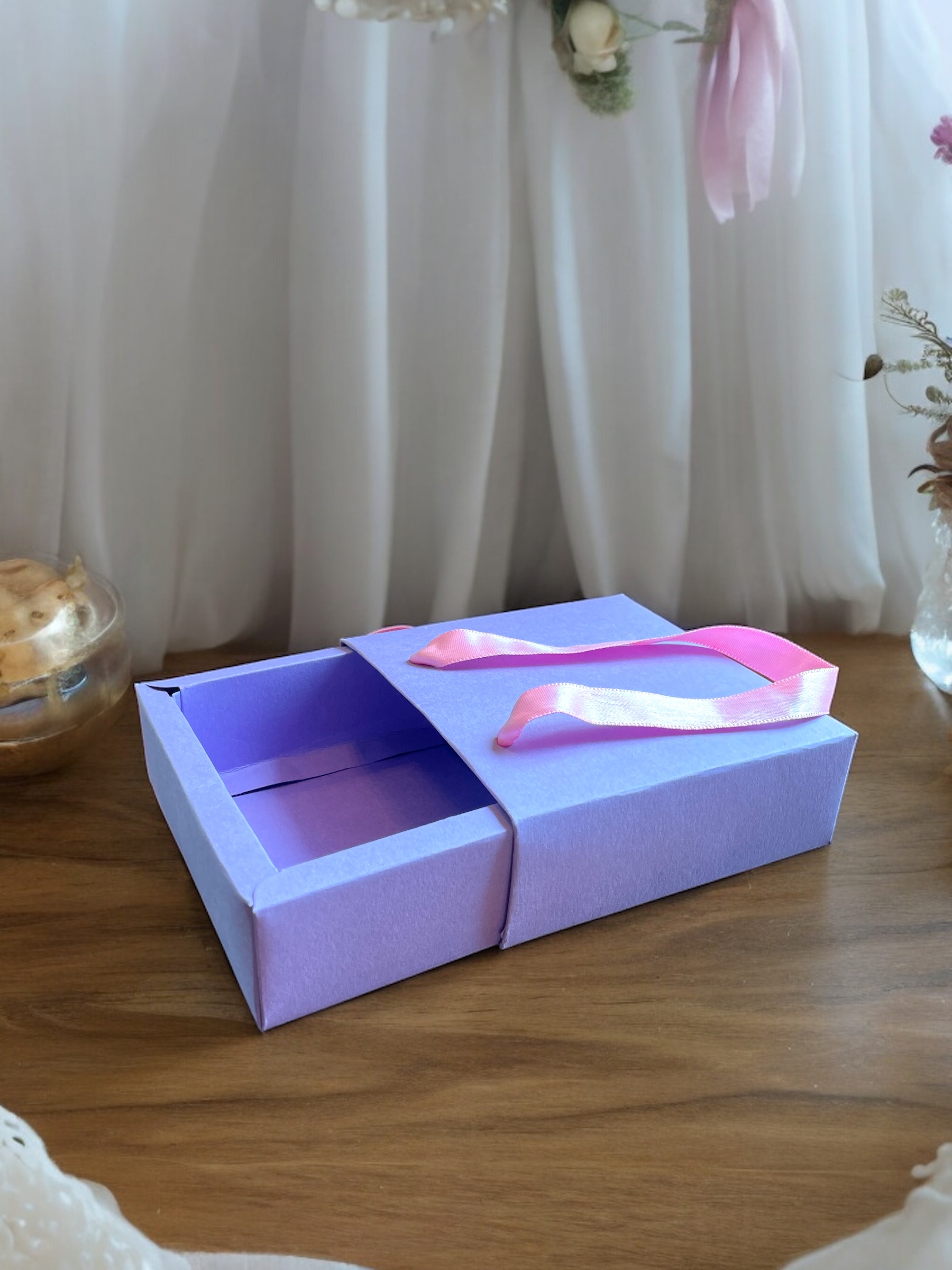 A paper slider box is a stylish packaging solution featuring a sliding mechanism. It consists of a sturdy outer sleeve and an inner tray that slides out, offering an elegant