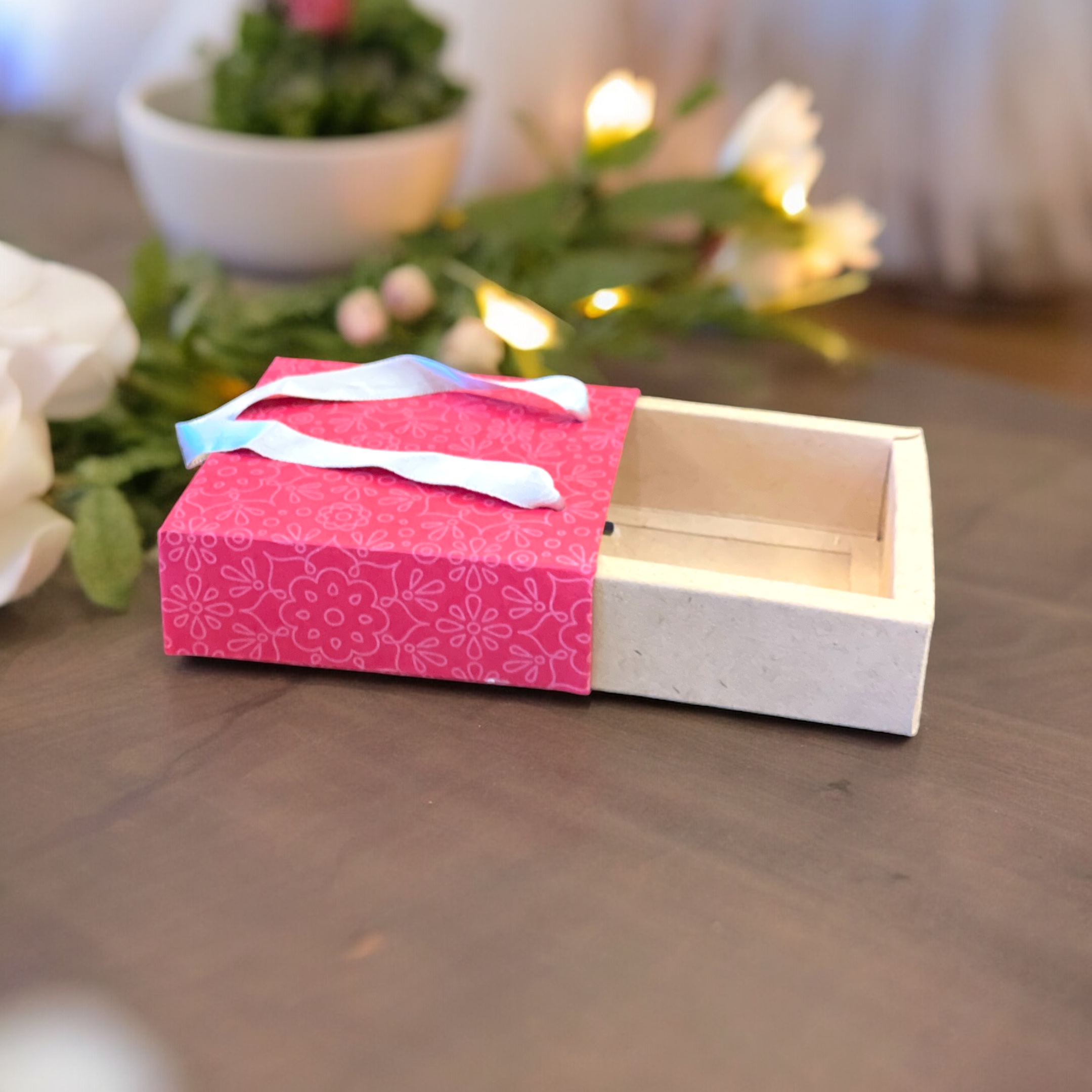 A paper slider box is a stylish packaging solution featuring a sliding mechanism. It consists of a sturdy outer sleeve and an inner tray that slides out, offering an elegant