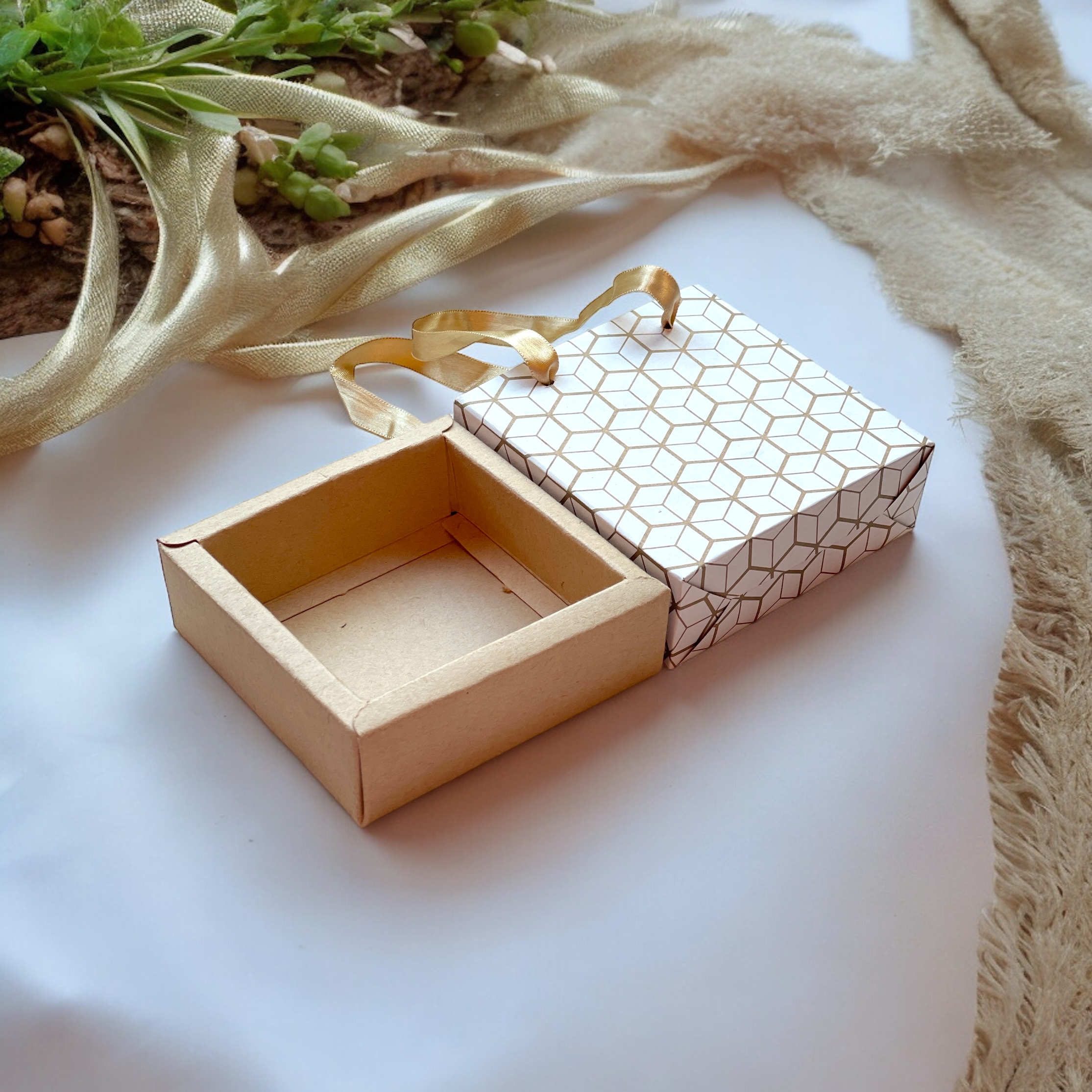A paper slider box is a stylish packaging solution featuring a sliding mechanism. It consists of a sturdy outer sleeve and an inner tray that slides out, offering an elegant