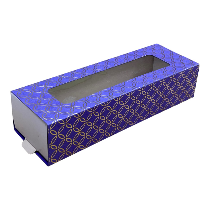 A paper slider box is a stylish packaging solution featuring a sliding mechanism. It consists of a sturdy outer sleeve and an inner tray that slides out, offering an elegant