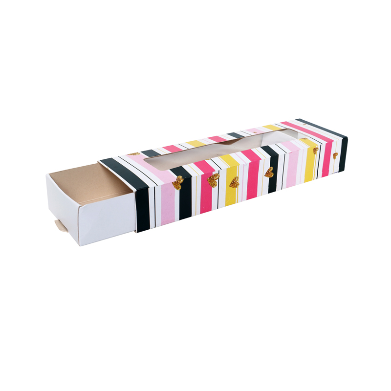 A paper slider box is a stylish packaging solution featuring a sliding mechanism. It consists of a sturdy outer sleeve and an inner tray that slides out, offering an elegant and interactive way to present and access items. Made from paperboard or cardstock, it can be customized with various designs and finishes, making it ideal for retail, gifts, or promotional use.