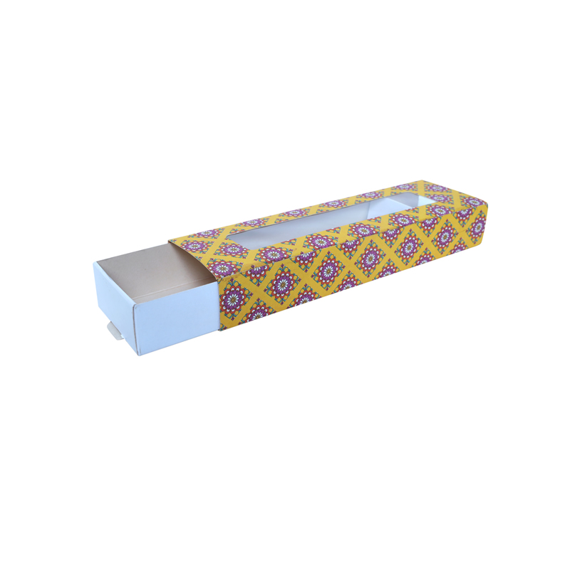 A paper slider box is a stylish packaging solution featuring a sliding mechanism. It consists of a sturdy outer sleeve and an inner tray that slides out, offering an elegant and interactive way to present and access items. Made from paperboard or cardstock, it can be customized with various designs and finishes, making it ideal for retail, gifts, or promotional use.