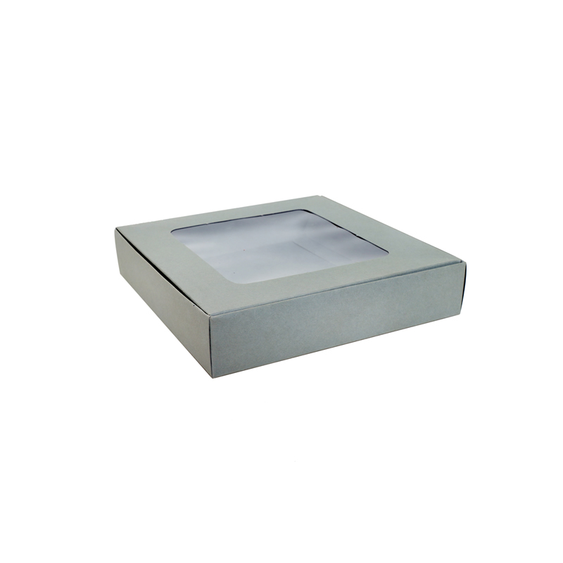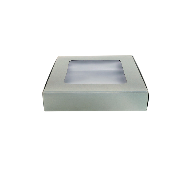 This small paper box features a clear window, making it perfect for displaying items while keeping them securely enclosed. Ideal for packaging gifts, treats, or small products, its elegant design
