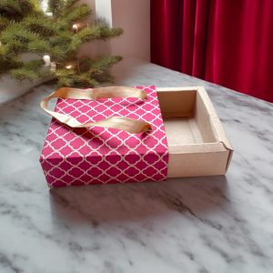 A paper slider box is a stylish packaging solution featuring a sliding mechanism. It consists of a sturdy outer sleeve and an inner tray that slides out, offering an elegant