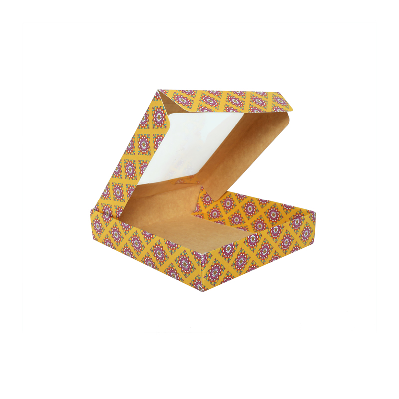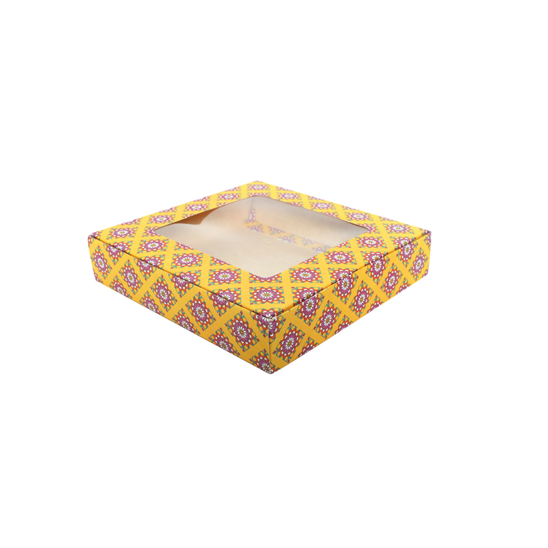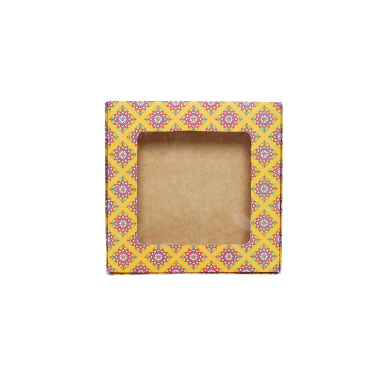 This small paper box features a clear window, making it perfect for displaying items while keeping them securely enclosed. Ideal for packaging gifts, treats, or small products, its elegant design